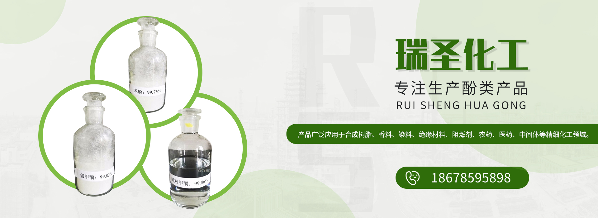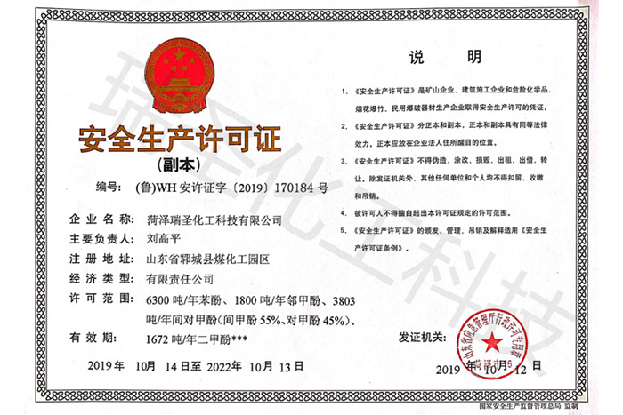 菏澤瑞圣化工科技有限公司是國內(nèi)酚類產(chǎn)品的生產(chǎn)企業(yè)。公司現(xiàn)有年加工粗酚20000萬噸的生產(chǎn)裝置及能力,可生產(chǎn)苯酚、鄰甲酚、間對甲酚、二甲酚等產(chǎn)品。產(chǎn)品廣泛應(yīng)用于合成樹脂、香料、染料、絕緣材料、阻燃劑、農(nóng)藥、醫(yī)藥、中間體等精細(xì)化工領(lǐng)域。本公司以誠為本,信譽保證,靠過硬的產(chǎn)品質(zhì)量和完善的服務(wù)贏得了國內(nèi)外廣大用戶的贊譽。產(chǎn)品暢銷國內(nèi)二十多個省市地區(qū),并地打入了國際市場,產(chǎn)品遠(yuǎn)銷意大利、巴西、印度、韓國、日本、臺灣等國家和地區(qū)。