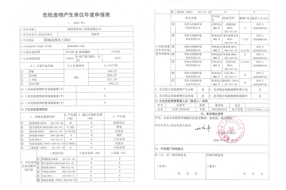菏澤瑞圣化工科技有限公司是2011年鄆城縣招商引資項目,地處鄆城縣煤化工園區(qū),是一家從事粗酚深加工企業(yè)。公司環(huán)境好,待遇優(yōu)厚。