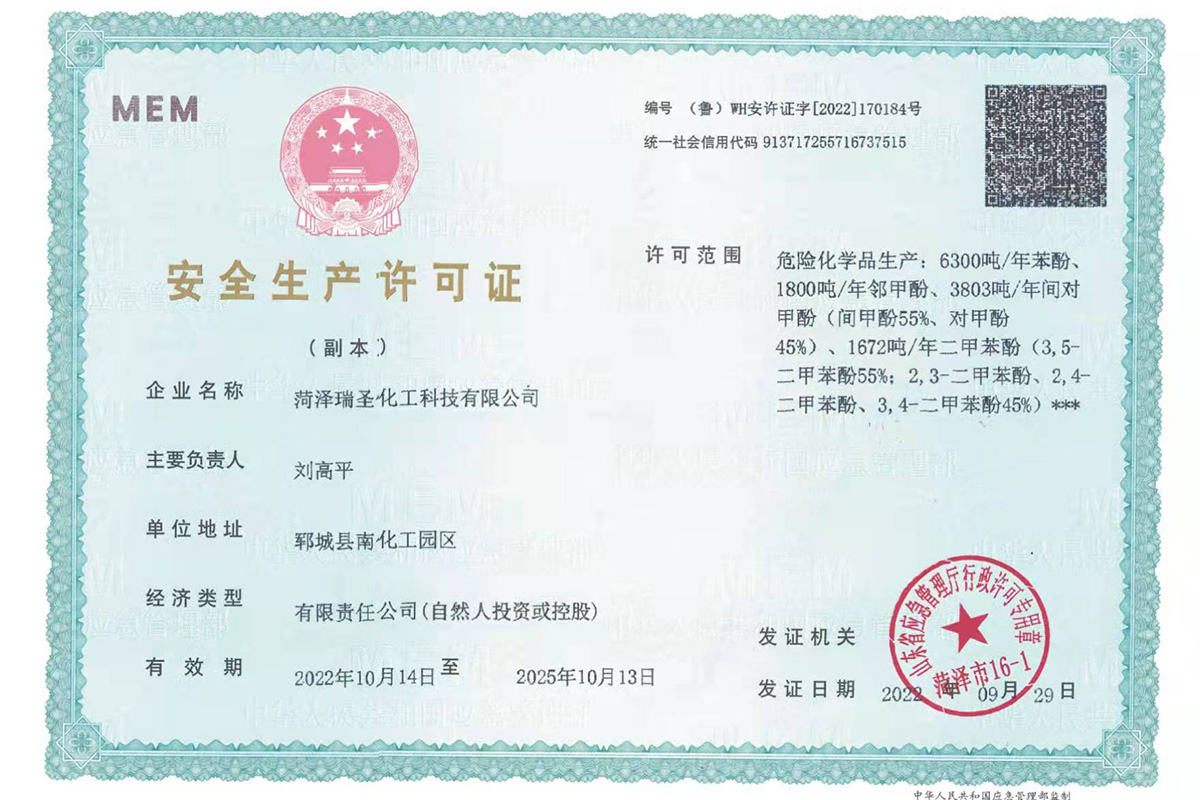 瑞圣化工資質(zhì)證書展示